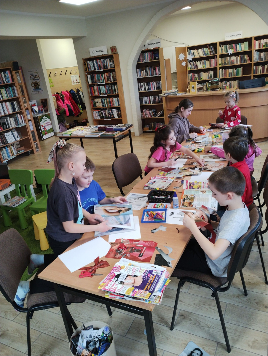 ✂️📰Wydzieranki, wycinanki….✂️🗞️ Kolaż jako forma wyrazu artystycznego i ćwiczenie małej motoryki na zajęciach plastycznych w bibliotece.