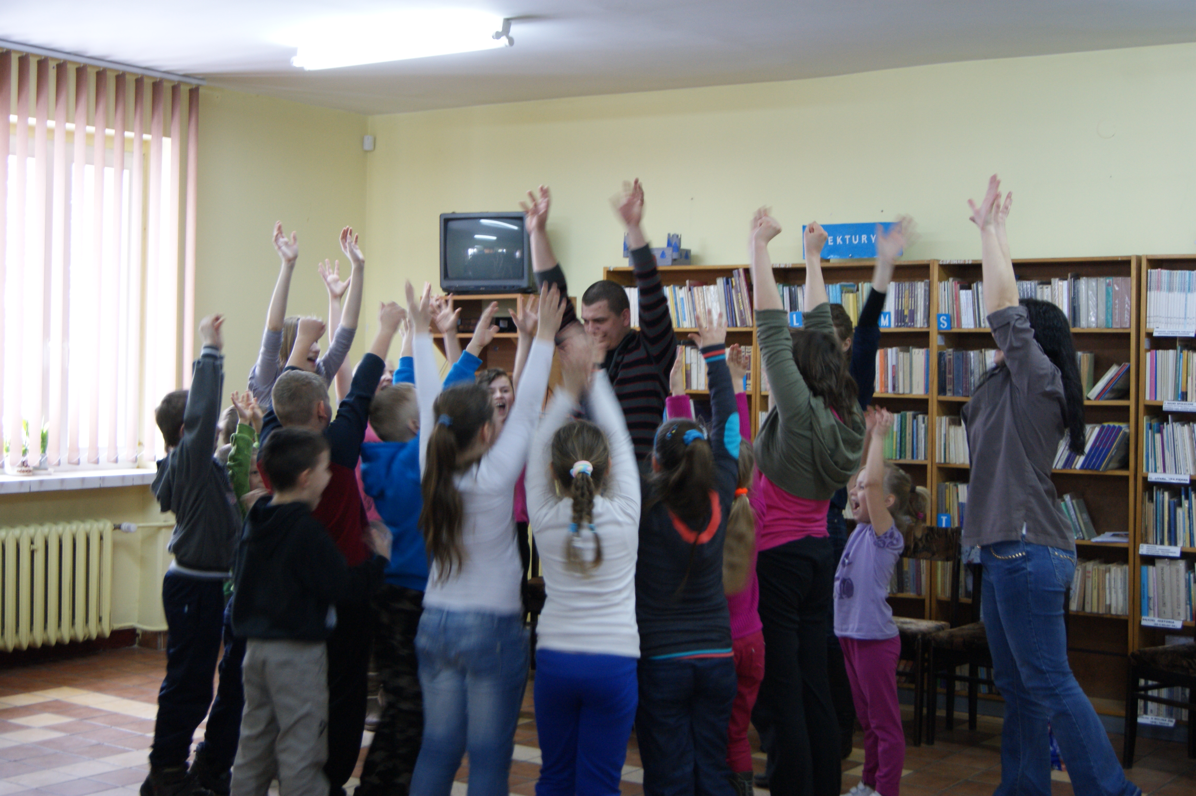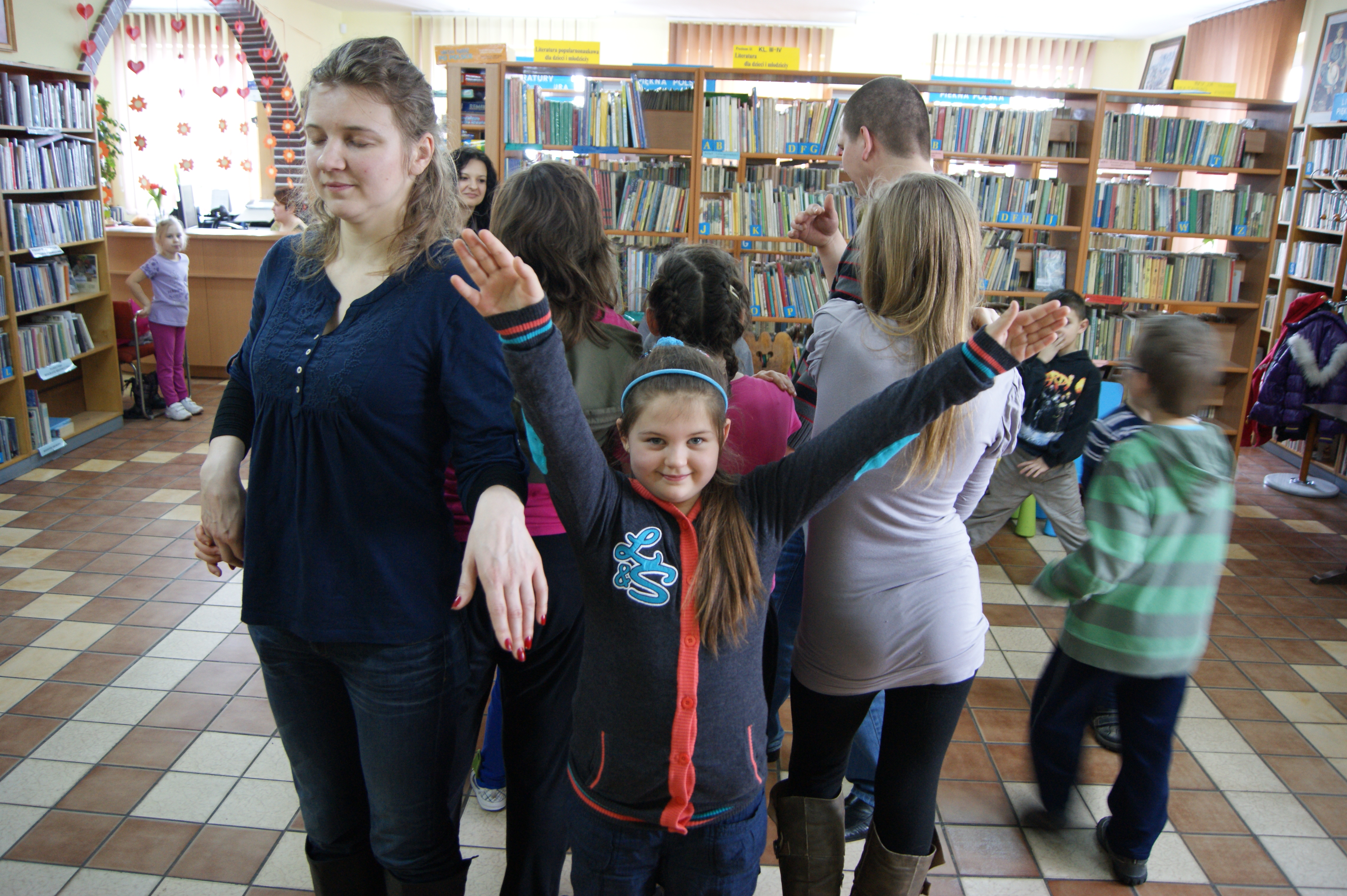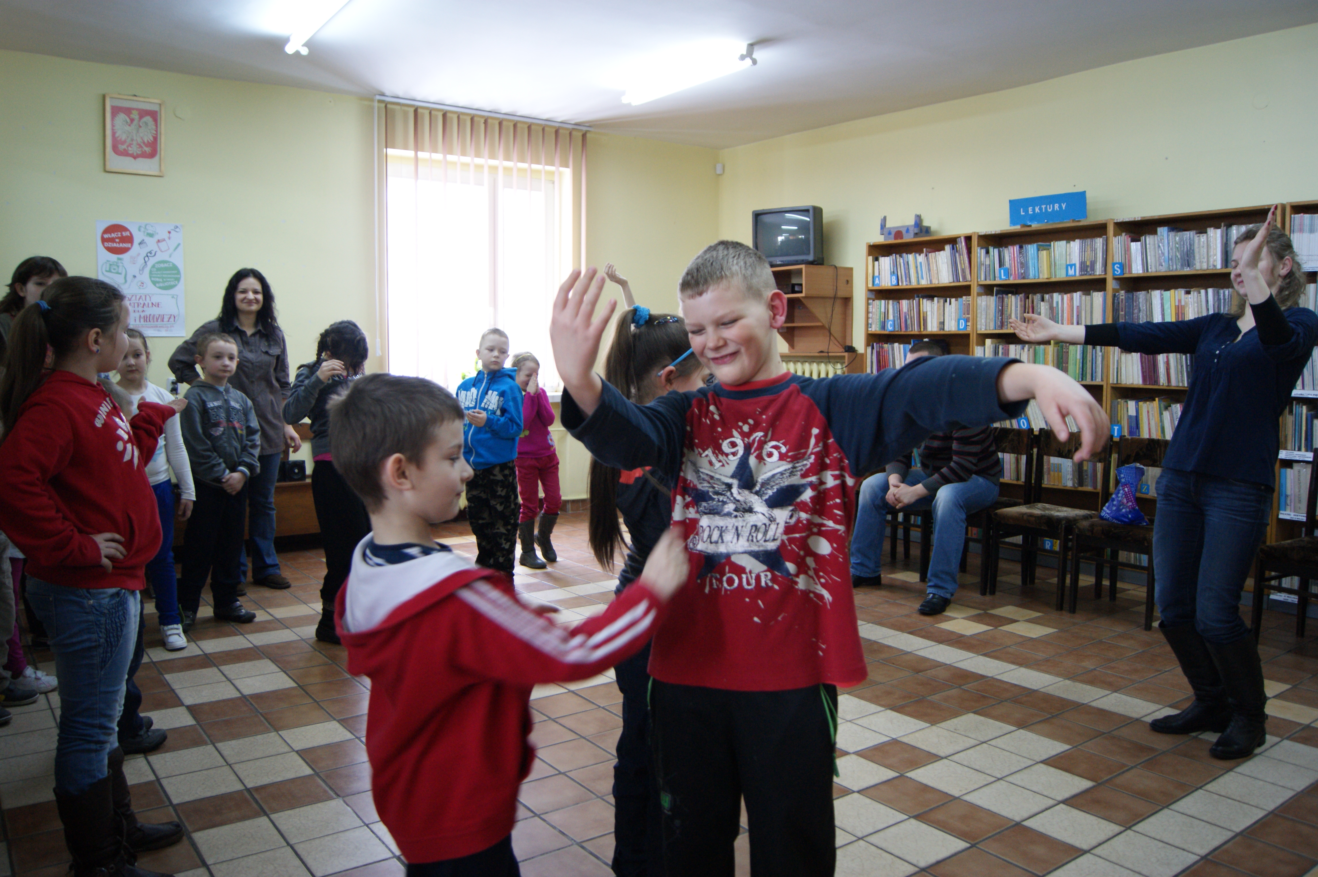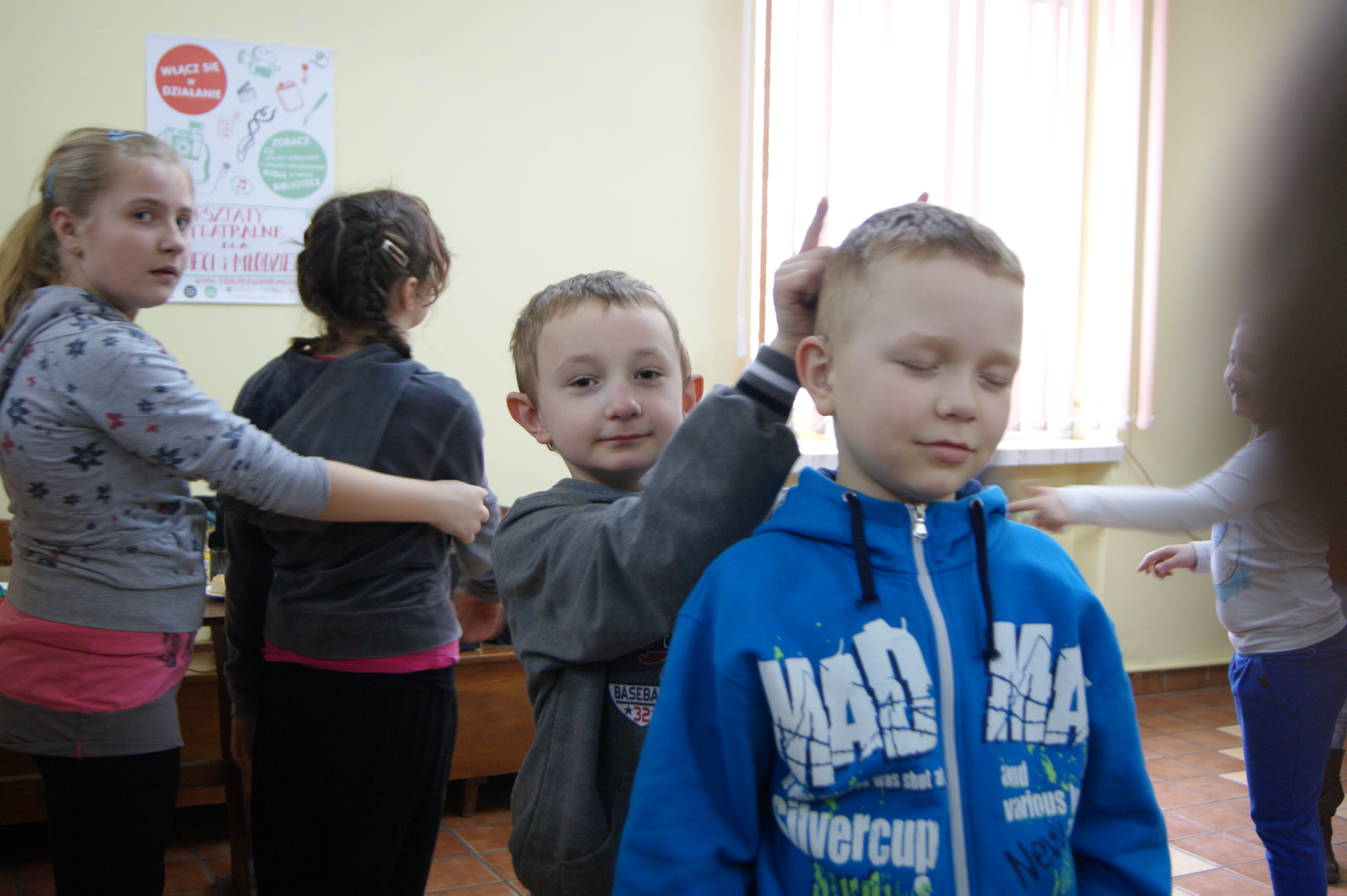 W warsztatach wzięły udział dzieci w dwóch kategoriach wiekowych: wspomniana grupa młodzieżowa, oraz dzieci w wieku 5-9 lat. Również nam, bibliotekarkom, nie udało się „wymigać” od tej niezwykłej gimnastyki ciała i umysłu. Wraz z maluchami, ćwiczyli także niektórzy rodzice – zaangażowani, otwarci i uśmiechnięci.